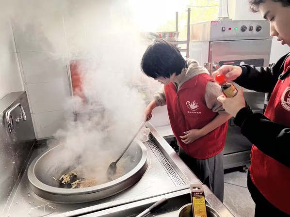 活动前期,志愿者们在星河爱心素食餐厅志愿服务队负责人刘星治女士的指导下,有序开展餐食制作工作。考虑到老年群体的饮食特点,志愿者们精心把控食材选择与烹饪细节,减少油盐用量、确保菜品软烂适口,同时严格遵守厨房安全操作规范,高效完成饭菜制作与打包。刘星治女士结合餐厅6年敬老服务的经验,向志愿者们传递“敬老不是形式,而是把关怀落到实处”的服务理念,让大家深刻理解志愿服务的责任与意义。