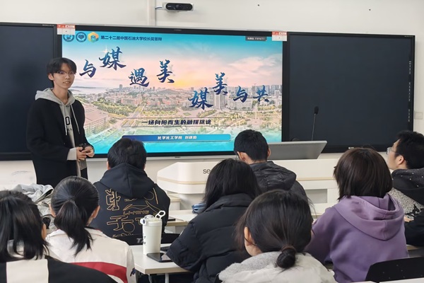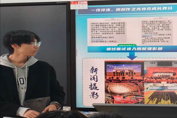 为弘扬新闻理想,启迪青年思维。11月12日下午,化工与制药类2505团支部于综合楼A416开展了“学记者之精神,赋青春之色彩”为主题的团日主题活动。本次活动邀请了原化蕴传媒中心主任,新闻宣传十佳学生干部刘秩伯进行了以“记者与新媒体交流平台”为主题的宣讲。