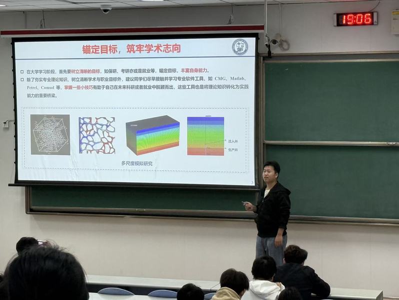 宣讲会结束团支部大合影 薛雅月摄宣讲会由智汇能源协会社团成员张家瑞主讲,核心围绕“科技创新落地方法”展开:先拆解科技创新入门步骤,结合案例讲解科技创新的思路;再详细介绍适合大一参与的科技类竞赛,包括报名时间、备赛重点及组队技巧;最后分享加入导师科研团队等思路参与科创。同时设置答疑环节,针对性解决大家“怕跟不上科研节奏”“不知如何选竞赛”的困惑,参会成员们踊跃提出自己的困惑,现场交流氛围浓厚。