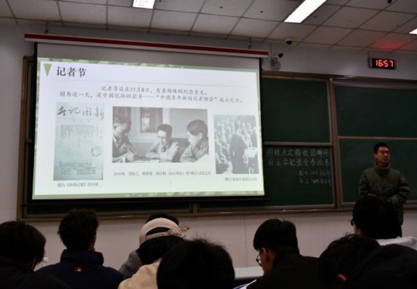 在专业技能讲解环节,主讲人结合记者节的特殊意义,追溯新闻事业发展历程,从《新闻记者》创刊号到“青记” 延安分会成立大会,深入阐述新闻宣传的历史价值与时代使命。同时,聚焦新闻写作与摄影技巧,以校园活动为例,讲解如何捕捉精彩瞬间、撰写生动稿件,强调新闻的时效性、真实性与可读性。