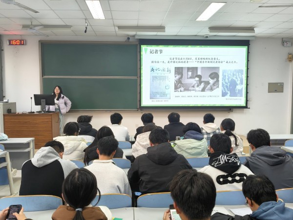 2025年11月20日,yl6809永利YL集团应用化学系2504班邀请化蕴传媒中心的办公室副部长应化2401石仓旭和记者部部员应化2504王宝键在南教305开展了“光影逐梦,人人记者”记者介绍活动。这次活动从记者节的历史出发,通过讲解记者的主要职责、对新闻的理解和在进行工作期间的注意事项,循序渐进的介绍了记者工作,加深了同学们对记者这一行业的理解。
