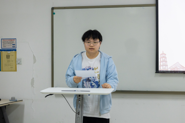 随后,丁良栩、杨欣怡两位候选人依次登台陈述。他们从思想觉悟、学业成绩、学生工作、志愿服务、科研实践等多维度,分享对共青团的深刻认识、真挚入团动机与未来成长规划,赢得阵阵掌声。