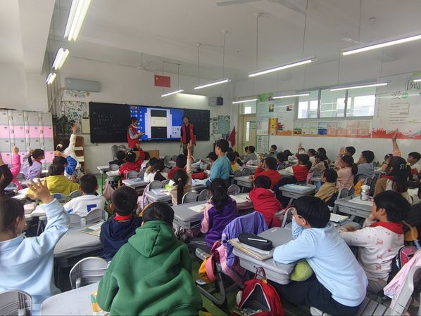 走进珠江路小学课堂,团支部成员以筹备阶段打磨的内容为基础,用南湖红船、长征路上的小英雄等故事串联党史历程,借国产大飞机、美丽乡村等实例解读国情发展。互动环节里,团支部成员抛出的“新中国成立年份”“长征胜利意义”等问题引发学生抢答热潮,现场还设置红色故事分享环节,孩子们用稚嫩语言传递对先烈的崇敬。生动宣讲与趣味互动深度融合,让党史国情知识在课堂扎根,推动红色教育在校园场景扎实落地。