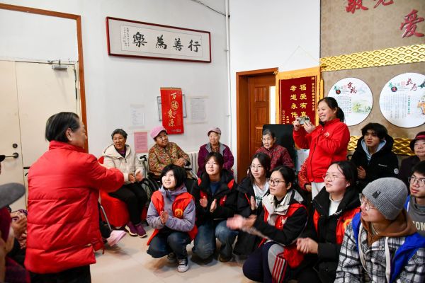 活动现场,支部成员分工协作,迅速投入志愿服务。一部分成员与护工默契配合,动作娴熟地为老人们准备爱心饺子,氤氲着团圆的暖意;另一部分成员小心翼翼地推着行动不便的老人前往大厅,耐心带领大家做起手指操,帮助老人们活动关节、舒缓筋骨;还有成员围在老人身边,一边轻柔地为他们修剪指甲,一边倾听过往故事,或轻声唱起经典老歌,歌声与笑声在公寓里久久回荡。考虑到冬日冰雪易滑,支部成员还主动清理了公寓台阶上的积雪与薄冰,为老人们的出行安全筑牢防线。