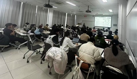 黄鑫磊博士结合自身研究经验,重点介绍了国际连续化制造平台的最新进展,对实验室、公斤级、中试及商业化生产各阶段的工艺优化实用策略进行了概述,简要探讨了放大技术、工艺设计要点及连续化制造新兴趋势。他结合行业实际案例,展示了如何将AI与核心化学反应工程、化工原理等基础知识相结合,构建更具韧性与灵活性的制造生态体系。他还通过联动连续化制造、工艺工程与人工智能三大领域,阐明了AMT如何助力实现更安全稳健、成本优化、高效快捷且环保友好的先进制造模式。报告中详细分析了AI驱动的各类方法,包括数据驱动优化、混合模型、预测控制及面向工业知识管理的生成式AI系统,正持续提升工艺理解深度、决策科学性与整体生产效率。参会师生就自己感兴趣的问题与黄博士进行了讨论,一致认为该报告展示了化工行业发展的新视角,强调了大学生要打好专业基础,才能更好的融入AI时代。