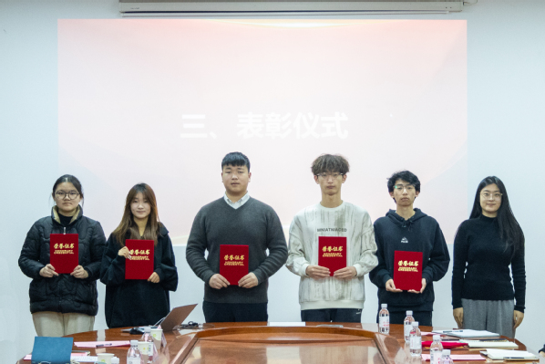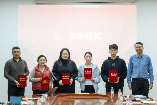 在表彰环节,徐永涛、郝志杰为获得“新闻宣传先进集体”的单位颁发奖牌,成玲玲、杨安为获评“优秀教工通讯员”的教工代表颁发荣誉证书,魏旭洁为荣获“十佳学生记者”的学生代表颁发荣誉证书。