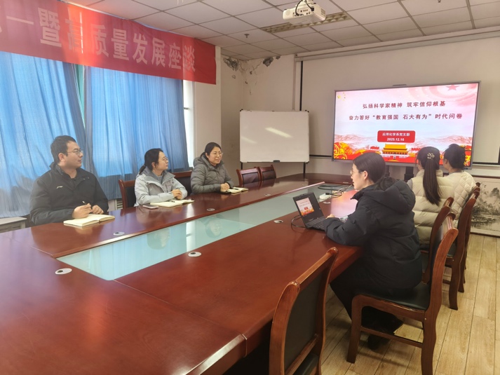 通过本次专题学习与交流,支部党员进一步深化了对科学家精神和教育强国使命的理解。大家将以老一辈科学家和杰出党员科学家为标杆,把爱国情怀、学术追求与育人使命有机结合,立足岗位、担当作为,奋力答好“教育强国、石大有为”的时代问卷。