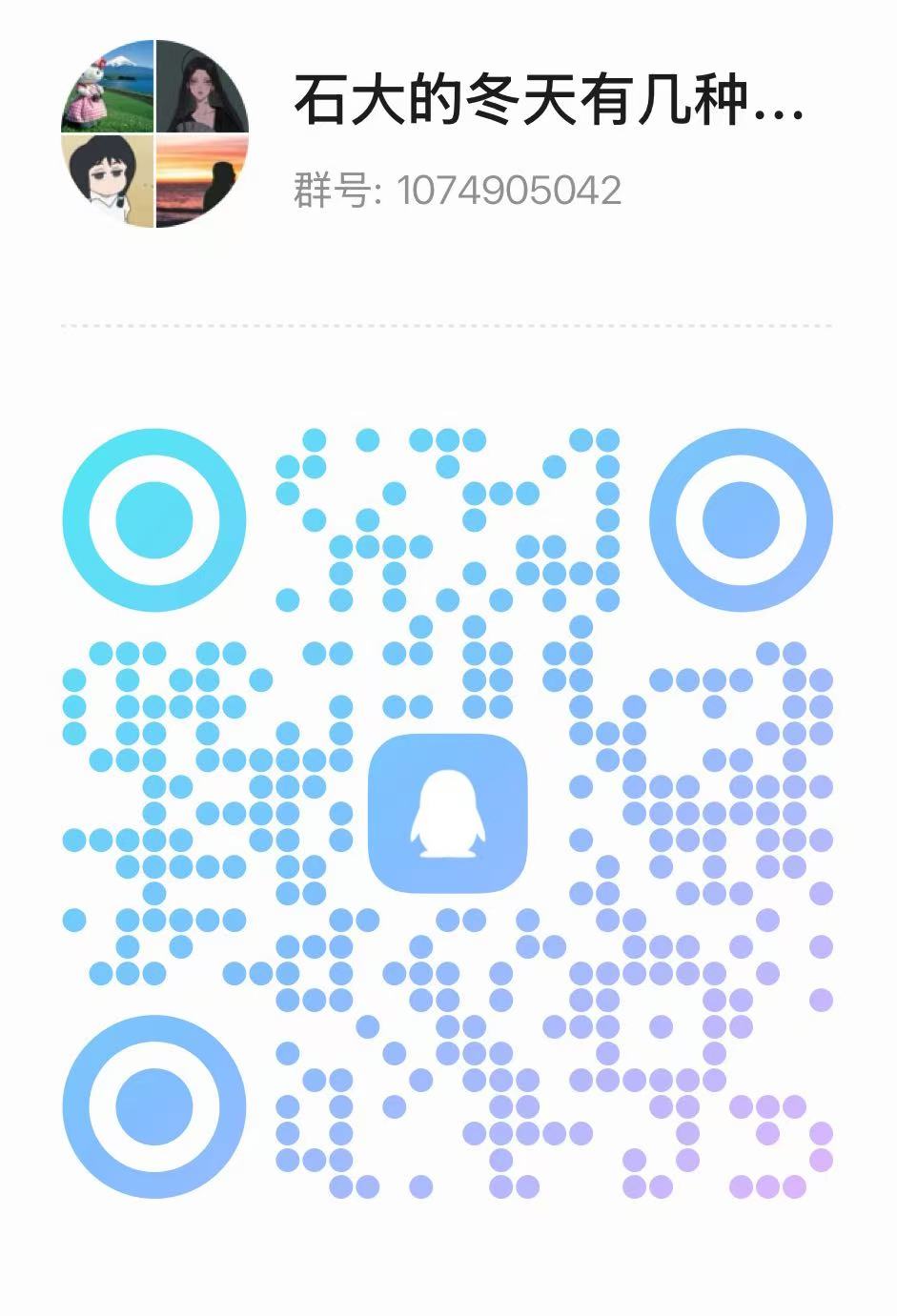 请参赛同学以#石大的冬天有几种姿态#为话题标签在微信朋友圈以四宫格或九宫格形势发布后,将作品原图+朋友圈截图+配文(文字以word形式)打包成压缩包,以“研究生摄影征集+姓名”为邮件主题,发送至指定邮箱:1909892661@qq.com。并同步加入下方QQ群。