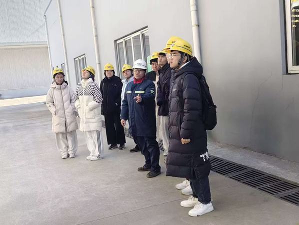 随后,实践队深入生产车间与成品仓库。厂区红、蓝、绿三色管道纵横交错,既清晰呈现物料逻辑,又彰显绿色生产理念。高速运转的自动化设备和全程智能操控,显示出高科技的发展水平。仓库中零距离接触企业产品、翻阅质量检测报告,更让工厂18项指标严苛检测化为实型。队员们深刻了解了化工生产流程,理论知识与实践工程相结合,认识到将实践融入专业学习中的重要意义。