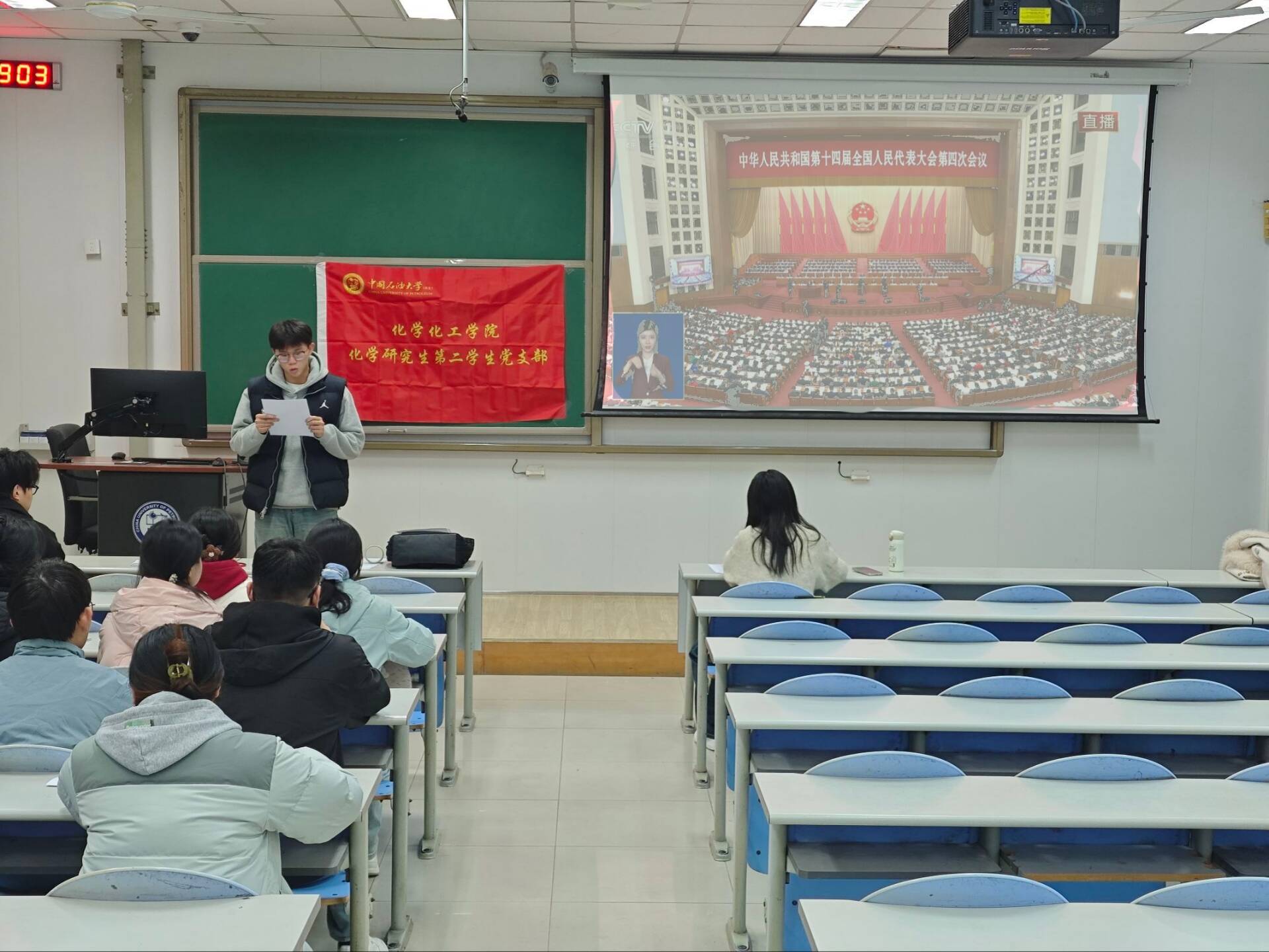 各党支部精心组织、有序开展学习活动。同学们认真聆听报告、记录要点,围绕新质生产力、科技创新、绿色低碳、教育科技人才一体化、“十五五”开局等热点内容展开热烈讨论,深刻领会国家发展蓝图与青年责任使命。大家一致认为,今年两会恰逢“十五五”规划开局,意义特殊、催人奋进,为青年学子成长成才、科研报国指明了前进方向。