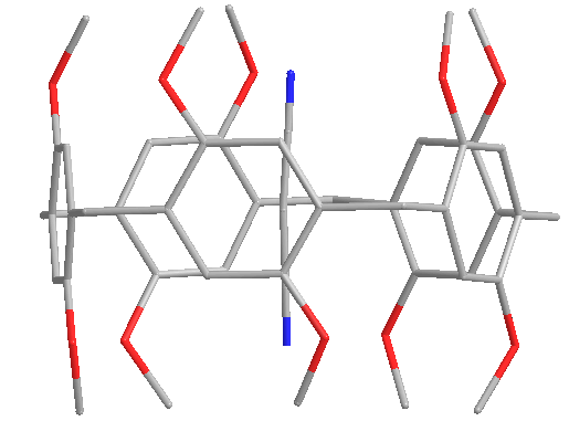 (a)Side view (b) Top view Figure 1 X-ray crystal structure of Pillar[5]arene 本课题组以柱芳烃作为主体大环分子,开展了一系列研究:合成了醌式大环主体柱芳烃(Figure 2a),并研究了它们与二腈分子的主客体络合性质;发展了柱芳烃独特的新型衍生化方法,即部分氧化环氧化法(Figure 2b)。